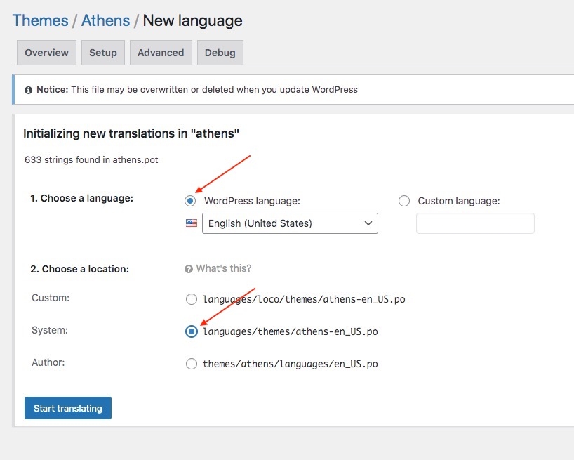 a) Choose theme to translate