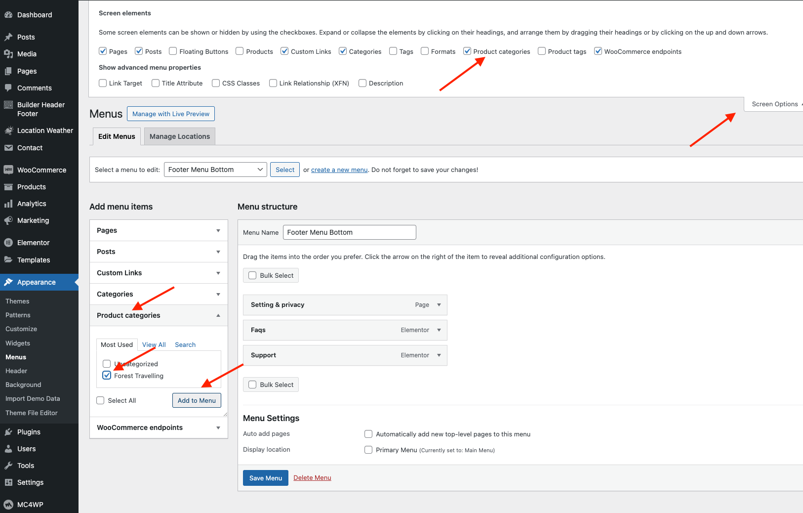 Go to **Appearance >> Menu >> Choose Product Categories** to add it to menu